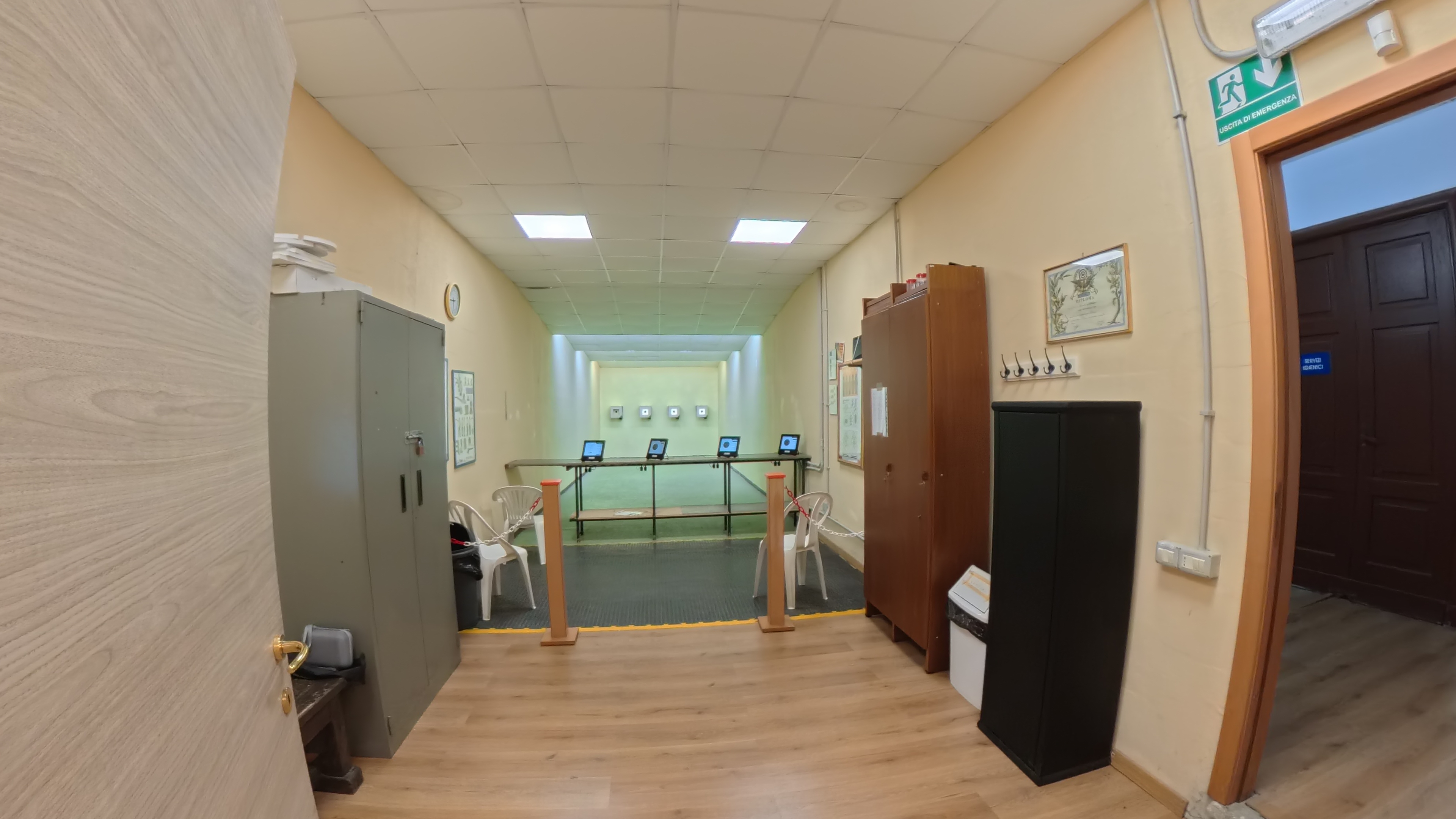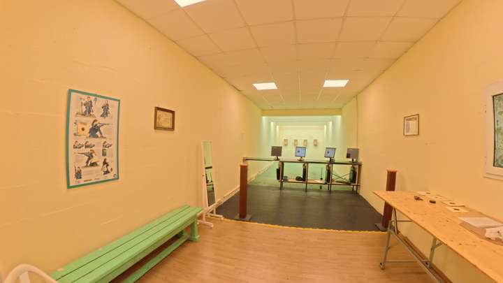 E' possibile il tiro da sdraiati, con apposita panca rialzabile, montabile su richiesta. Il bersaglio è a 10 metri, che è la distanza regolamentare per le gare P10. Sono disponibili bersagli cartacei ed anche bersagli con lettura elettronica, tramite apposito software.